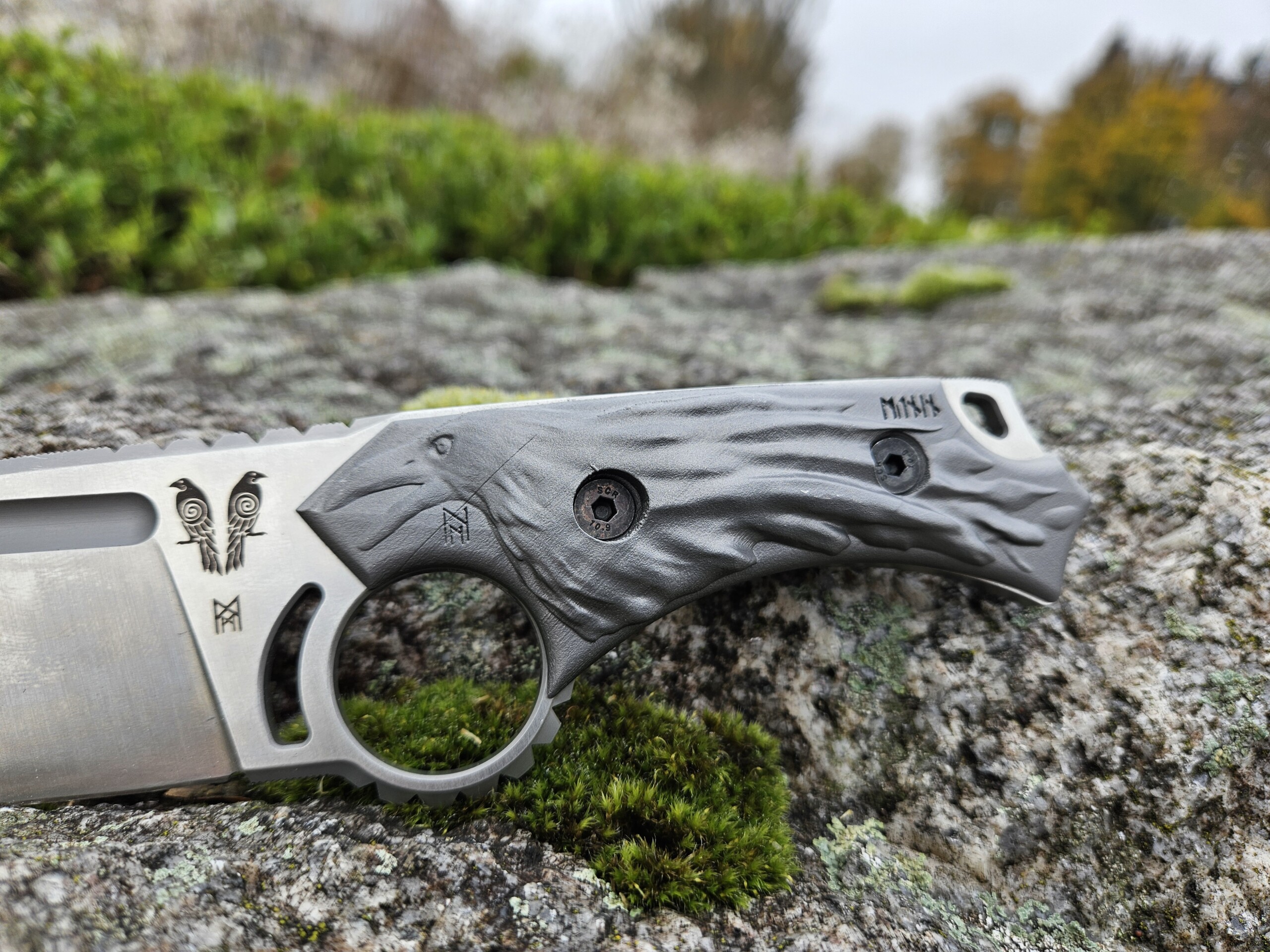 EDC Kukri titanium only handle scales skull