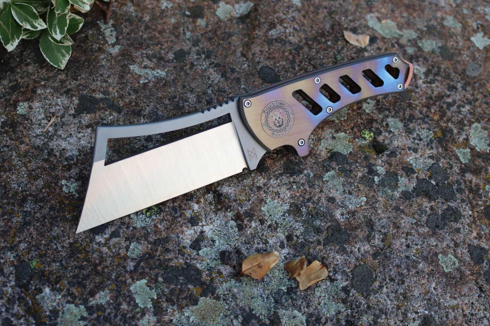 Here you can decide for yourself which blade should be in the handle. The handle itself is made of titanium with a copper inlay and reflects a high quality standard.