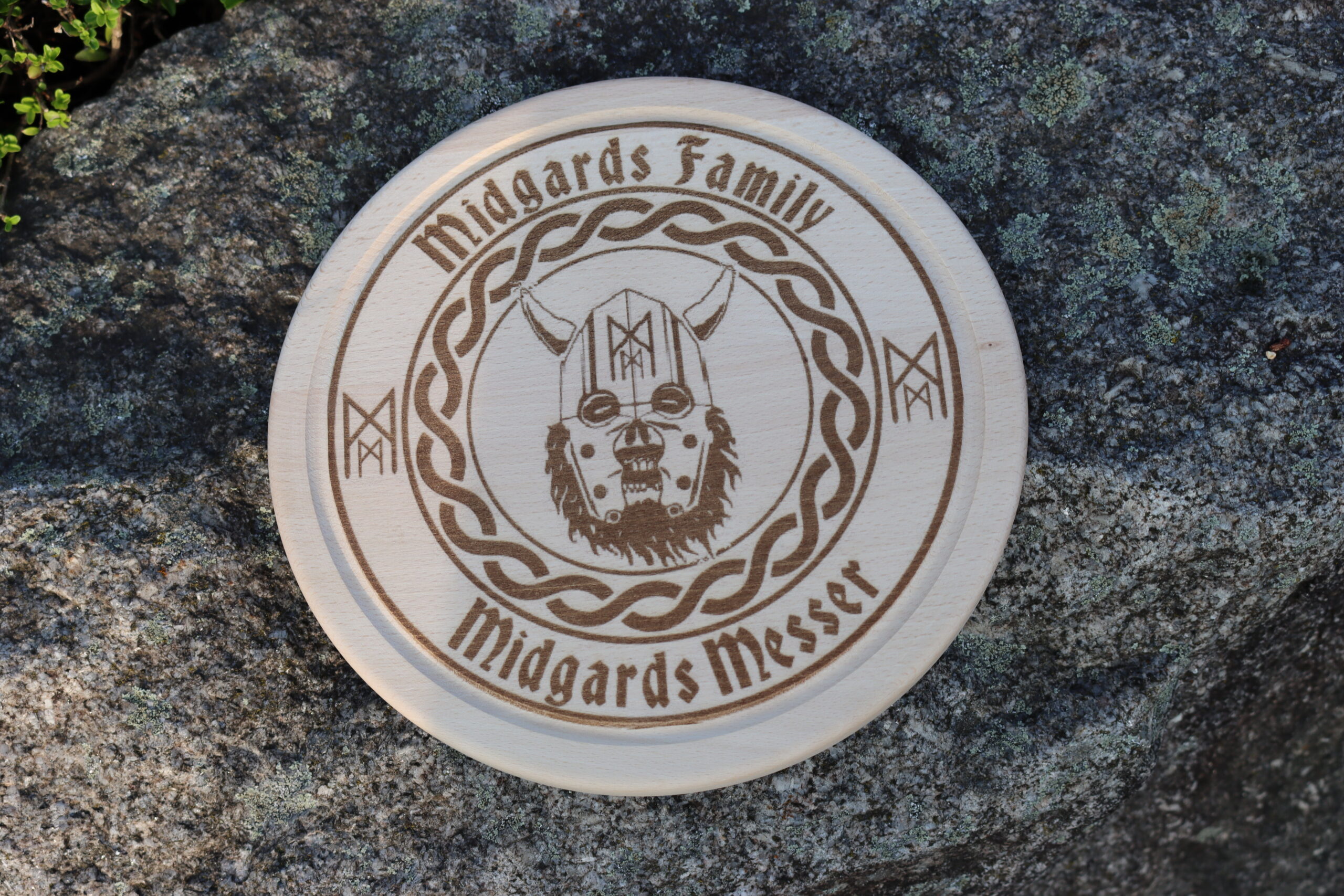 Belasertes Holzbrettchen das als Schneidunterlage oder als mittelalterliche Deko dienen kann.